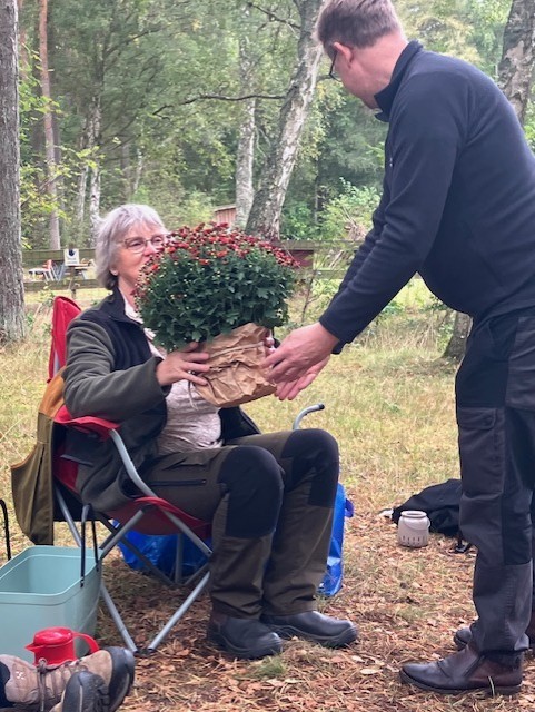 You are here: Home › Fuktiga tårar från himlen när Jägareförbundets hundkurser i Ystad hade examen › Anders med examensgåva till Eva